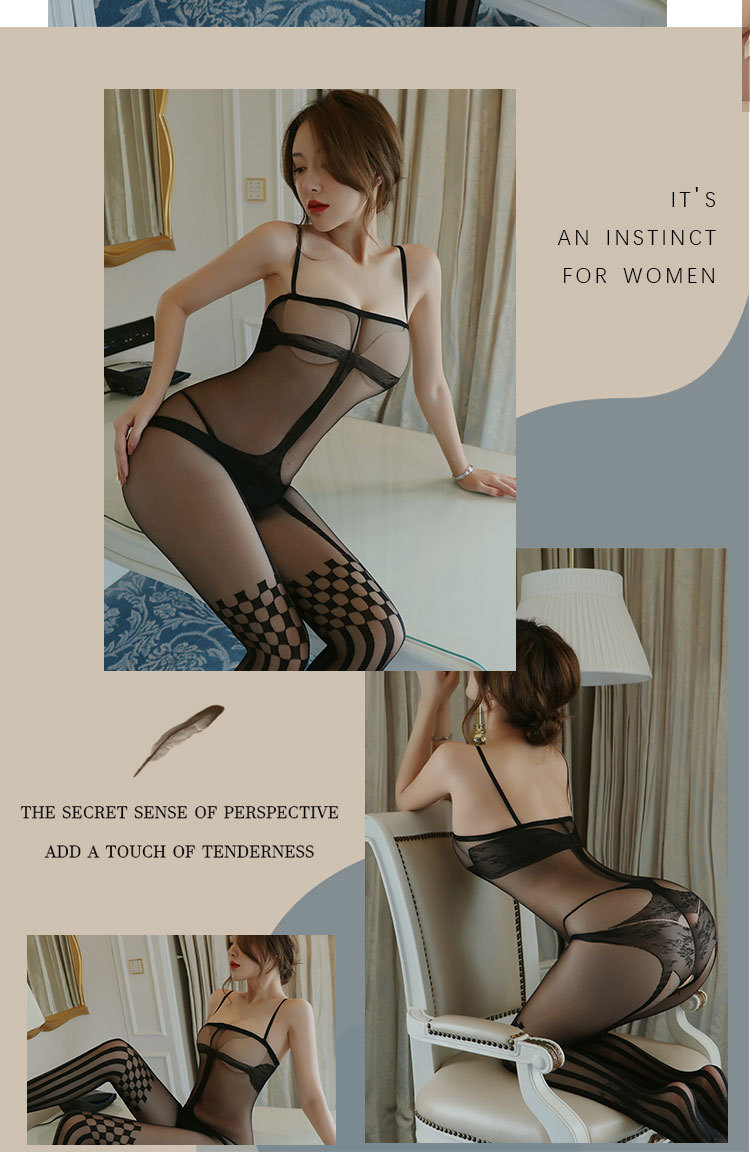 AO5055-情趣內衣女士歐美透視性感吊帶提花絲襪連體衣