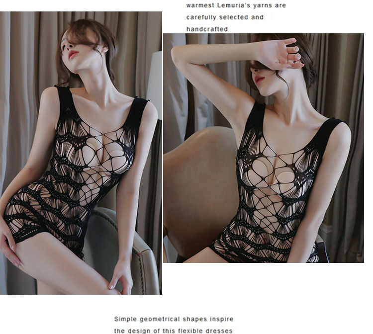 AO5058-情趣內衣女式提花免脫開檔連體裙網衣睡裙代發