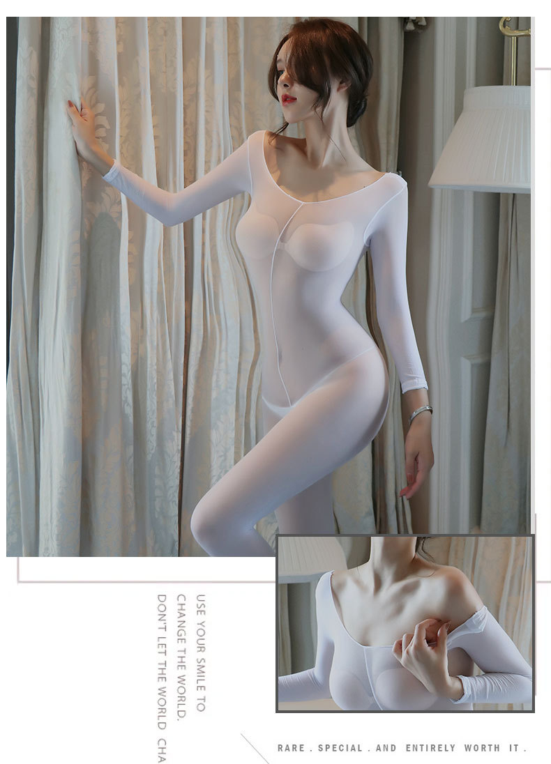 AO8610-情趣內衣女性感透視連體絲襪長袖開檔免脫情趣睡衣