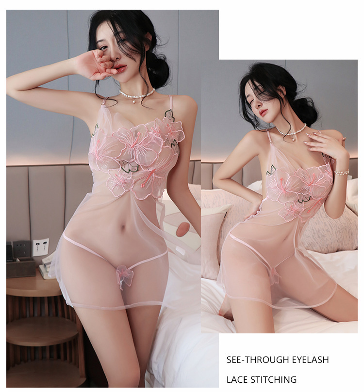 【A-1018】性感內衣情趣內衣網紗透視性感誘惑女睡衣純欲繡花女睡裙套裝