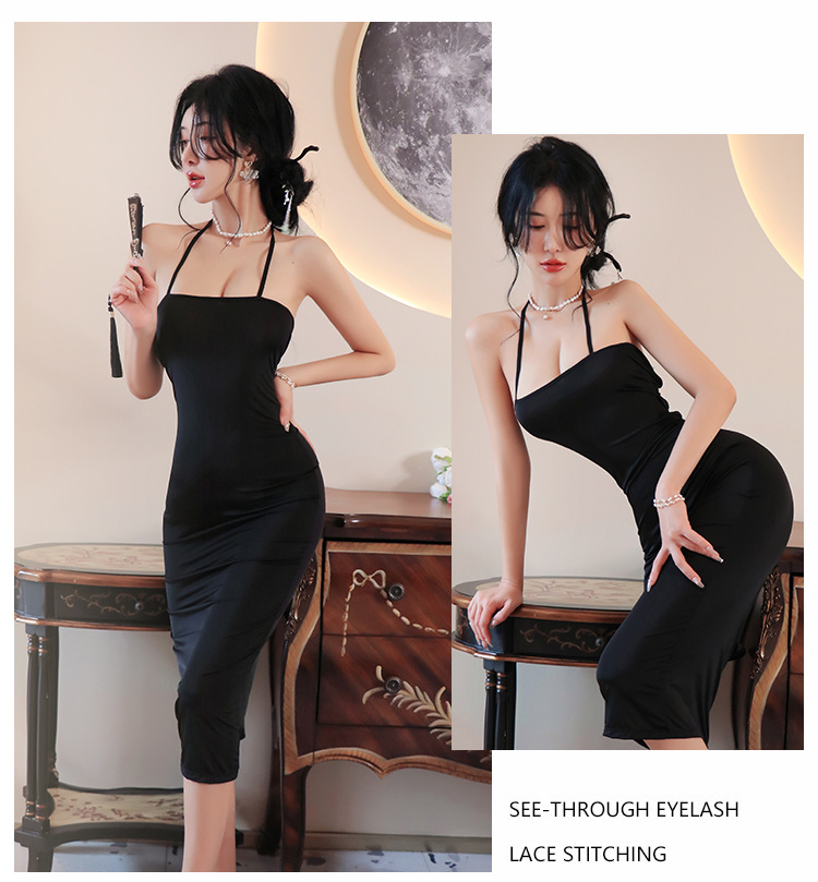 【A-1121】性感內衣情趣內衣誘惑長裙掛脖系帶睡衣火辣夜店制服女睡衣女睡裙