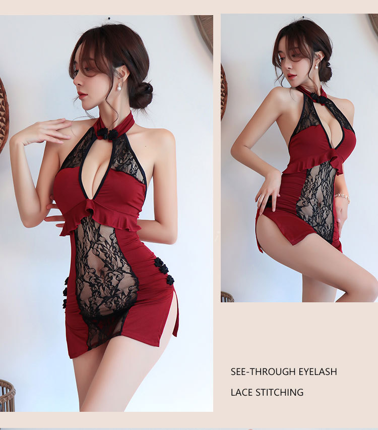 【A-1328】情趣內衣性感蕾絲誘惑復古旗袍睡衣火辣制服誘惑套裝