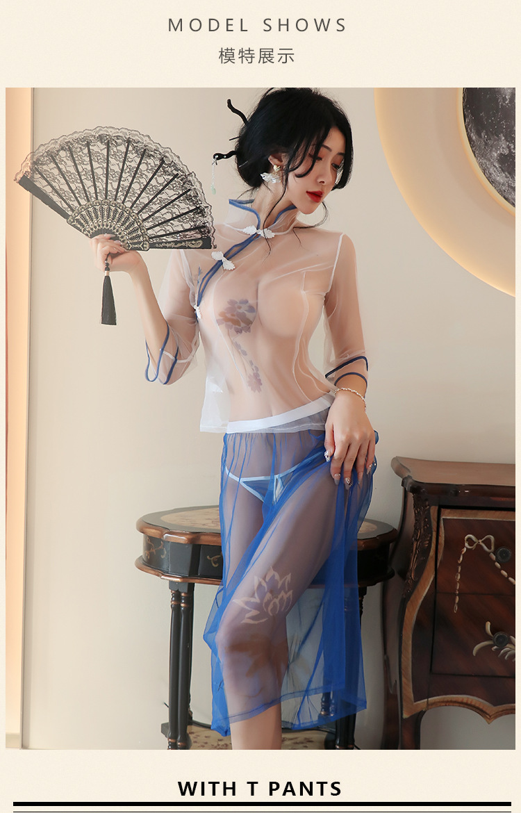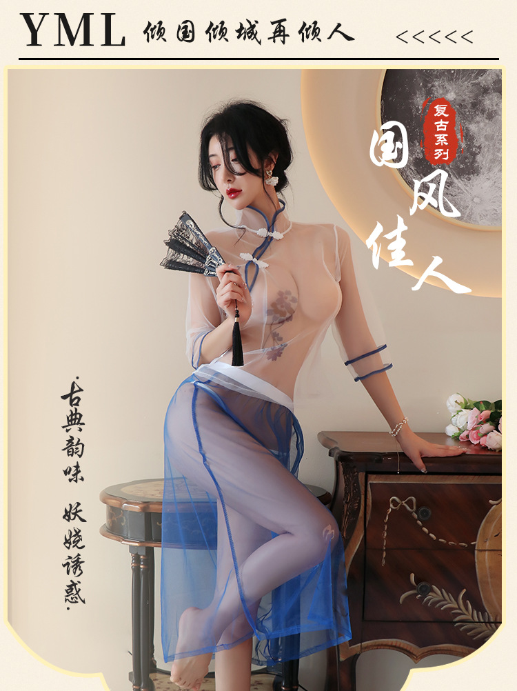 【A-1506】性感內衣情趣內衣性感誘惑網紗透視印花民國長裙漢服套裝睡衣睡裙