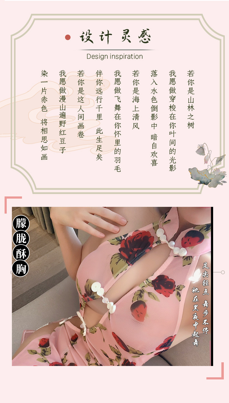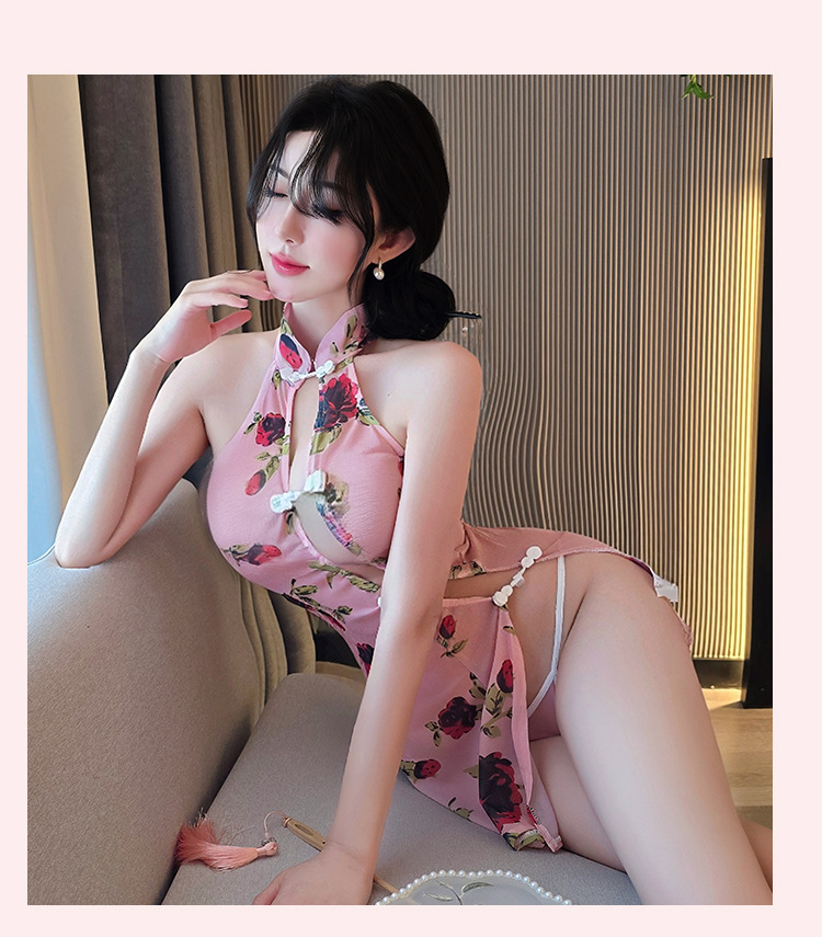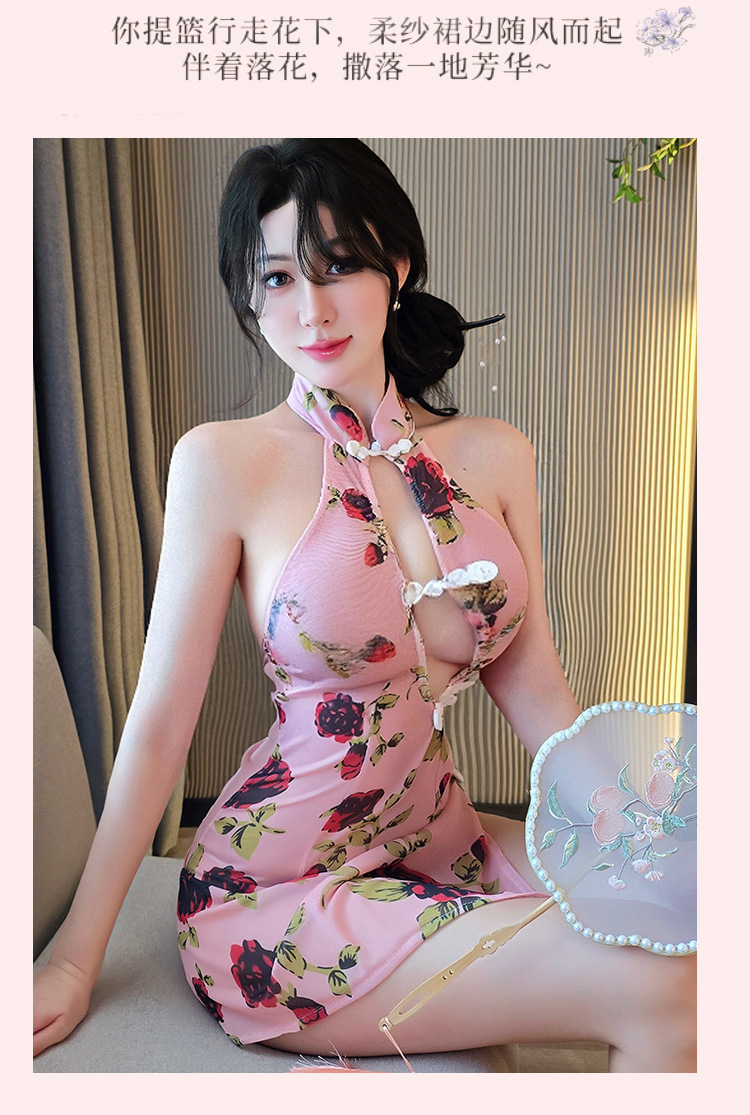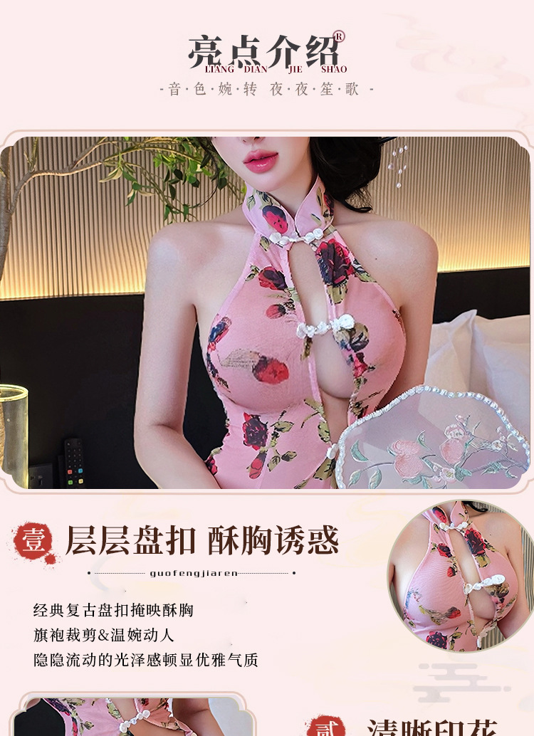 【A-1553】情趣內衣性感誘惑開叉古典旗袍復古印花修身純欲睡裙睡衣