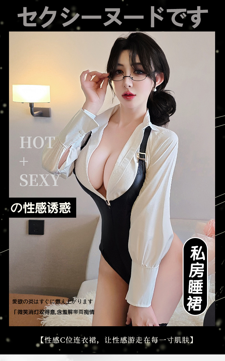 【A-1564】性感情趣內衣火辣漆皮秘書連體制服教師職業角色扮演女睡衣睡裙