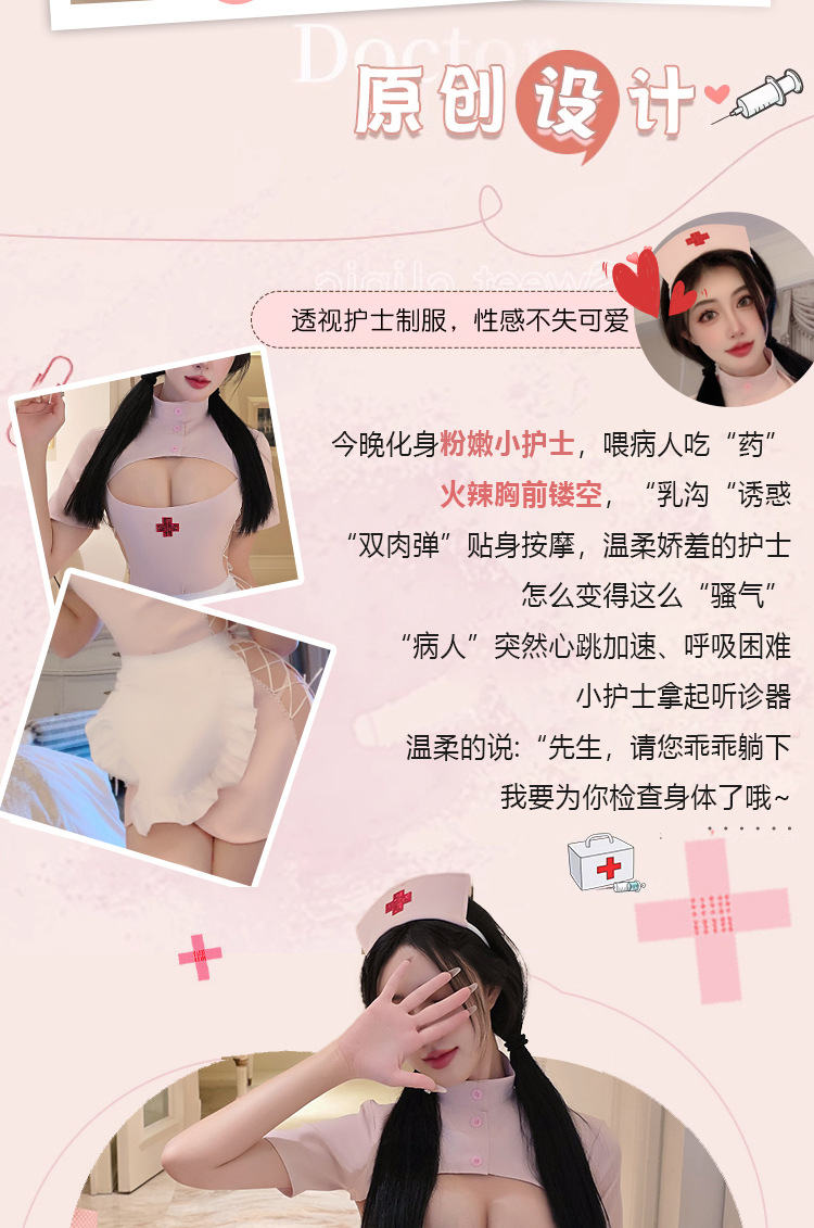 【A-1711】情趣內衣性感甜心護士性感開衩露臀制服套裝免脫套裝女睡衣睡裙角色扮演