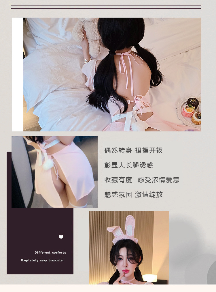 【A-1716】情趣內衣性感蕾絲木耳邊花邊透視吊帶兔女郎制服套裝