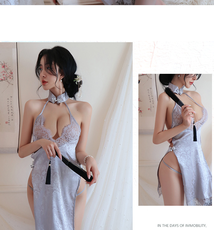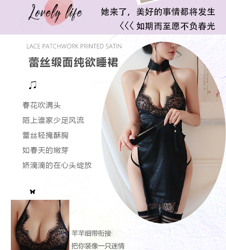 【A-1816】性感內衣情趣内衣性感诱惑高开叉床上激情免脱透视蕾丝旗袍女睡衣睡裙