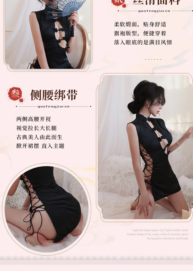 【A-1817】性感內衣情趣內衣性感鏤空復古旗袍短裙連衣裙純欲風開叉裙女睡衣睡裙