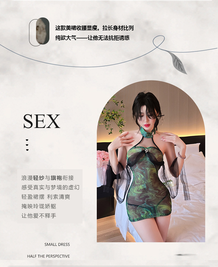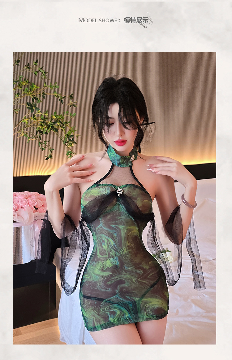 【A-1831】情趣內衣性感旗袍純欲禁欲誘惑睡衣掛脖睡裙蕾絲套裝女睡衣睡裙