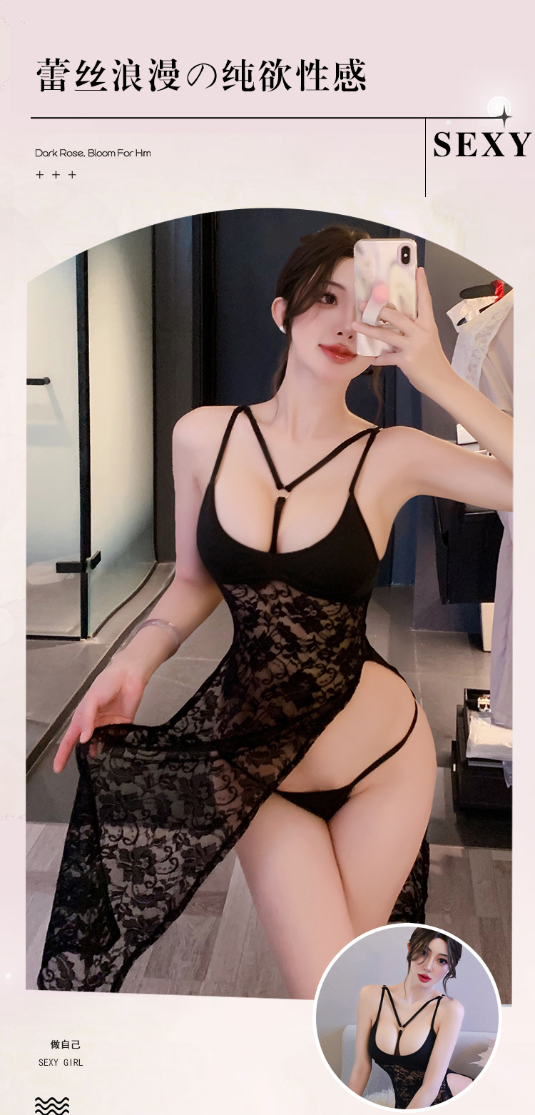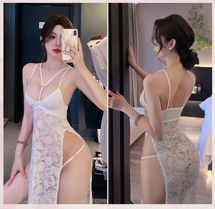 【A-1833】情趣內衣性感網紅蕾絲透明開叉睡裙夜店誘惑制服套裝女睡衣睡裙