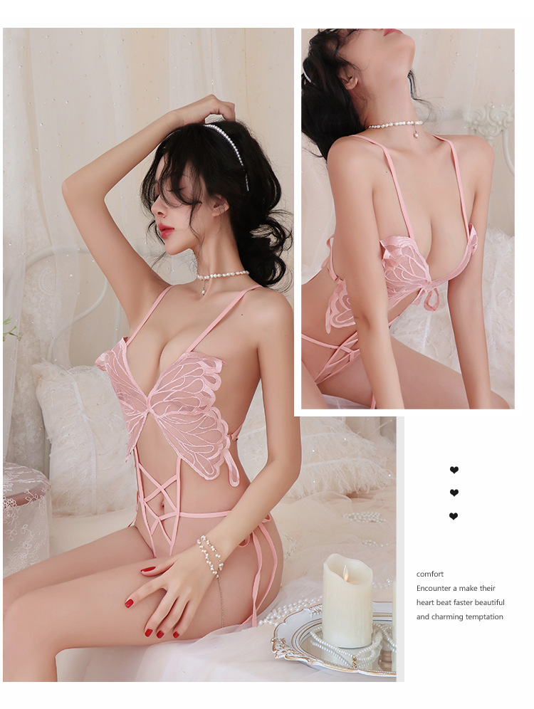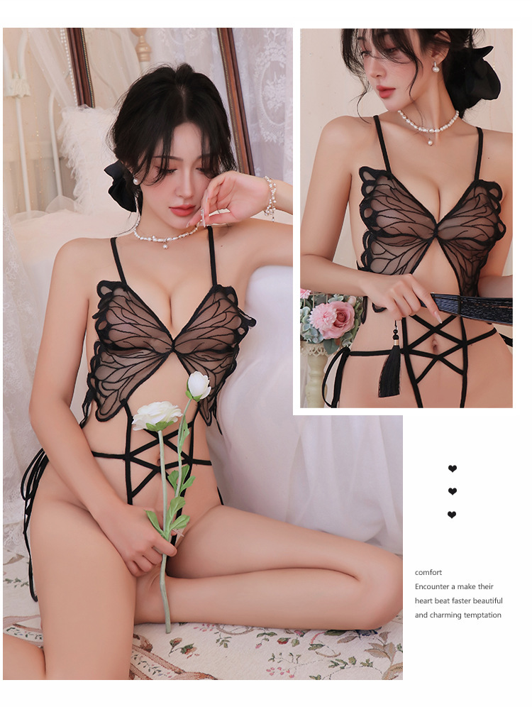 【A-2024】性感內衣情趣內衣性感誘惑網紗透視蝴蝶掛脖吊帶睡裙純欲女睡衣睡裙