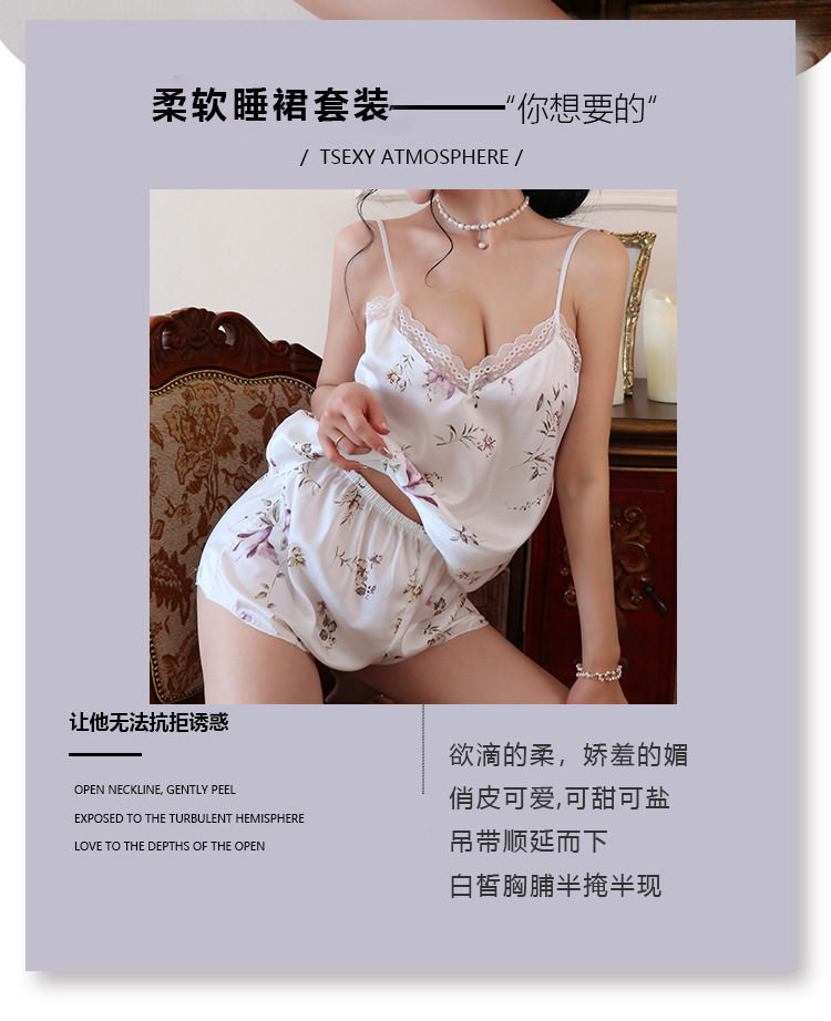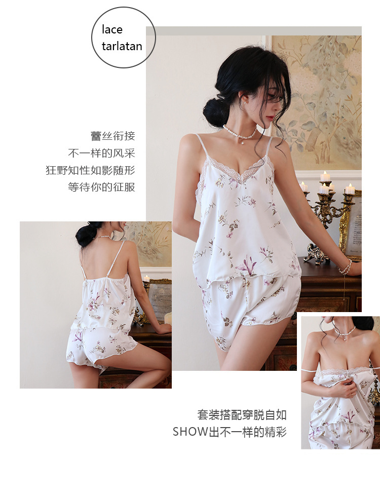 【A-2113】性感內衣情趣內衣性感深V誘惑甜美印花吊帶短褲兩件套家居服女睡衣睡裙