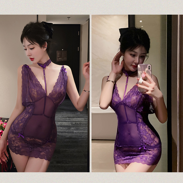 【A-2128】情趣內衣純欲透視網紗蕾絲吊帶睡裙性感內搭綁帶睡裙女睡衣睡裙