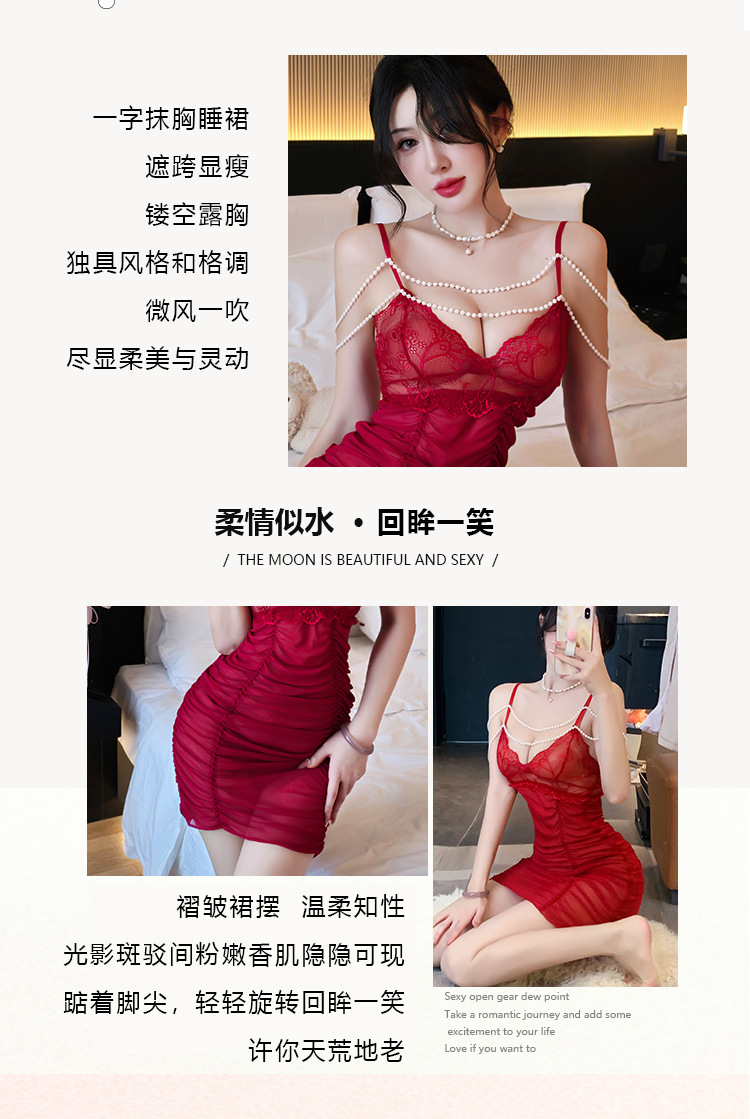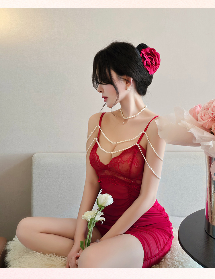 【A-2137】情趣內衣女性感透視吊帶裙純欲蕾絲珍珠睡衣激情女睡衣睡裙