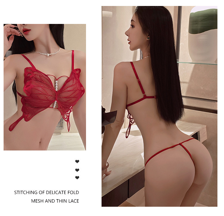 【A-2619】性感情趣內衣性感透視純欲可愛蝴蝶節網紗三點式套裝女睡衣睡裙
