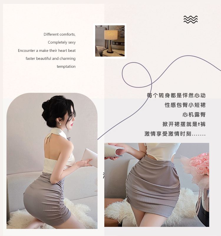 【A-3302】情趣內衣性感純欲蕾絲花邊掛脖連衣裙鏤空緊身包臀裙女睡衣睡裙