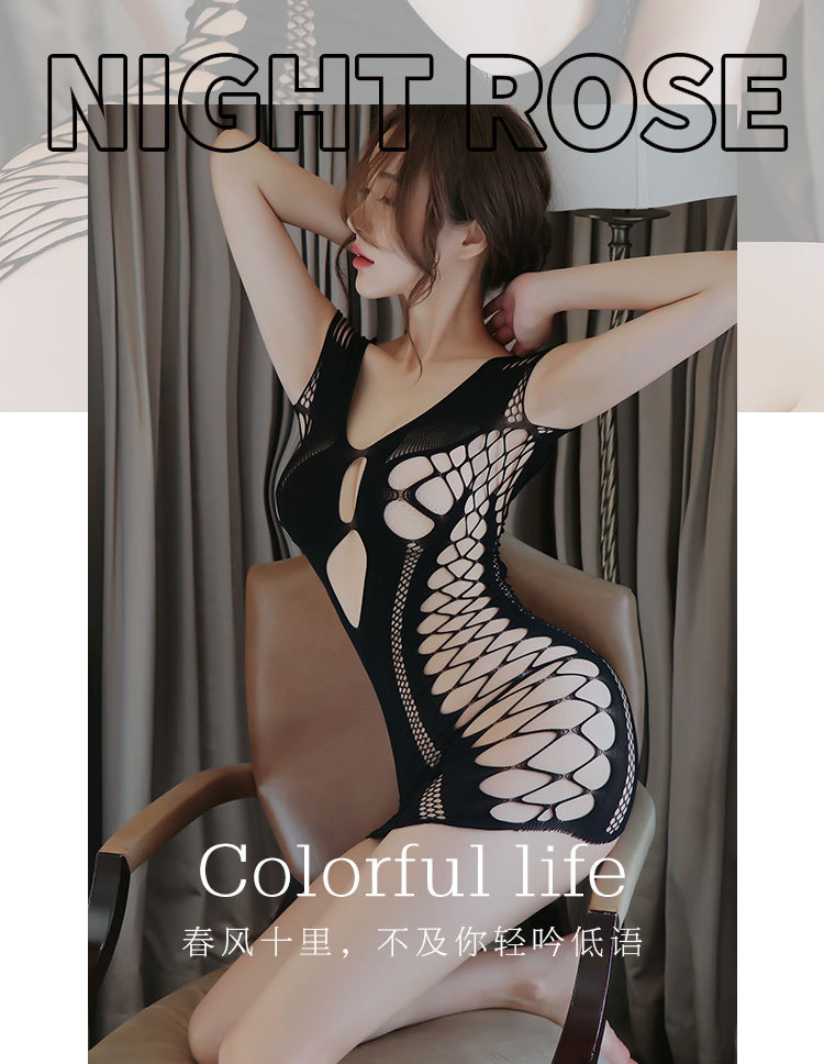 AO5098-情趣內衣女性感吊帶包臀提花網衣連身衣網眼誘惑睡裙歐美