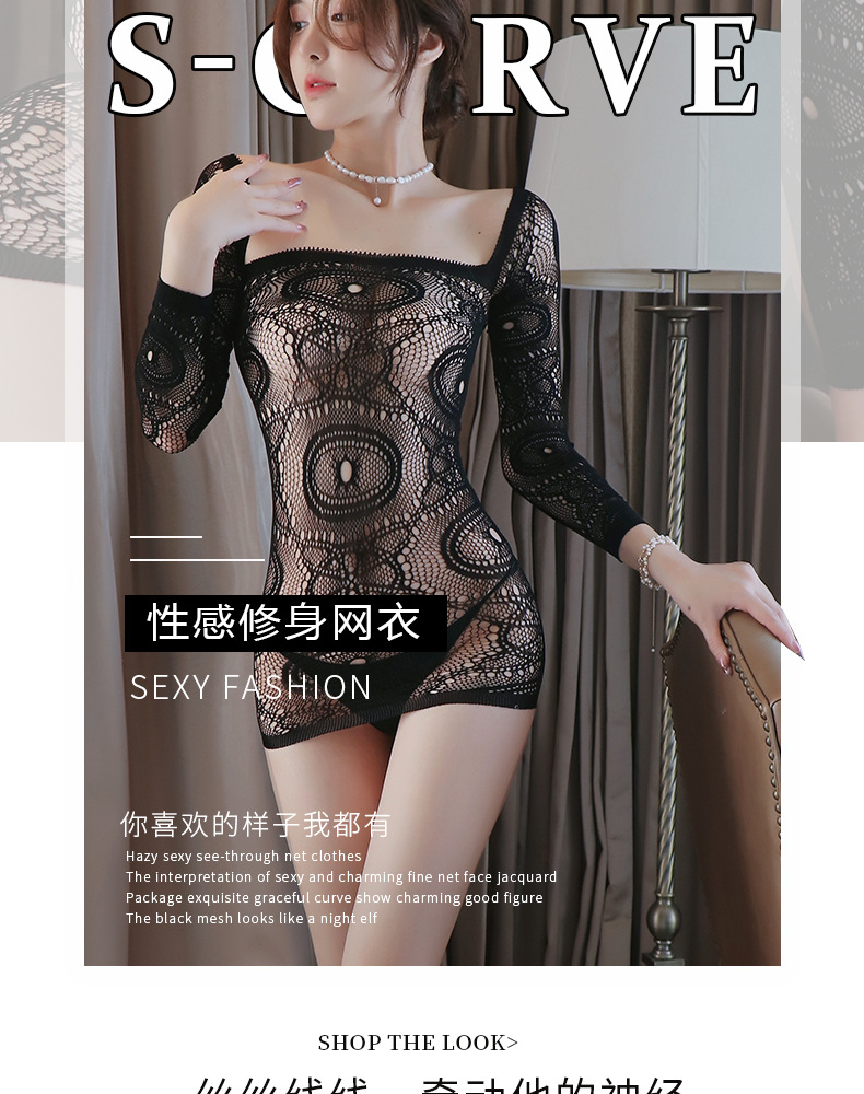 AO6034-情趣內衣女性感誘惑透明鏤空網衣連身襪包臀裙