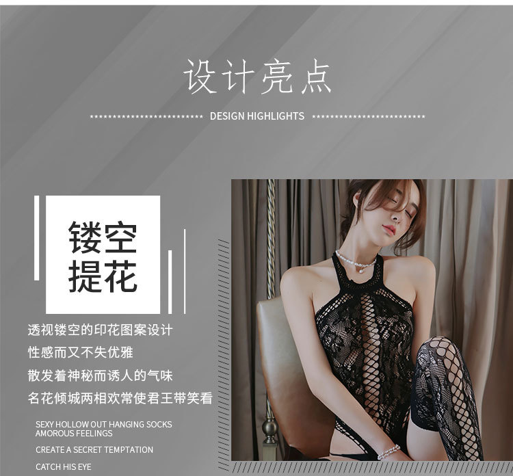 AO6042-情趣內衣女性感掛脖連體睡衣火辣誘惑開檔網衣透明連體衣