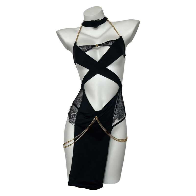 BS1303-性感情趣內衣猫女金鏈綴飾連身裙激情火辣制服角色誘惑套裝女睡衣睡裙