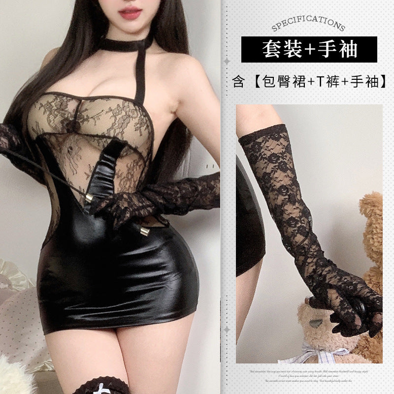 BS1319-性感情趣內衣純欲蕾絲透視掛脖包臀裙純欲免脫連體制服套裝女睡衣睡裙