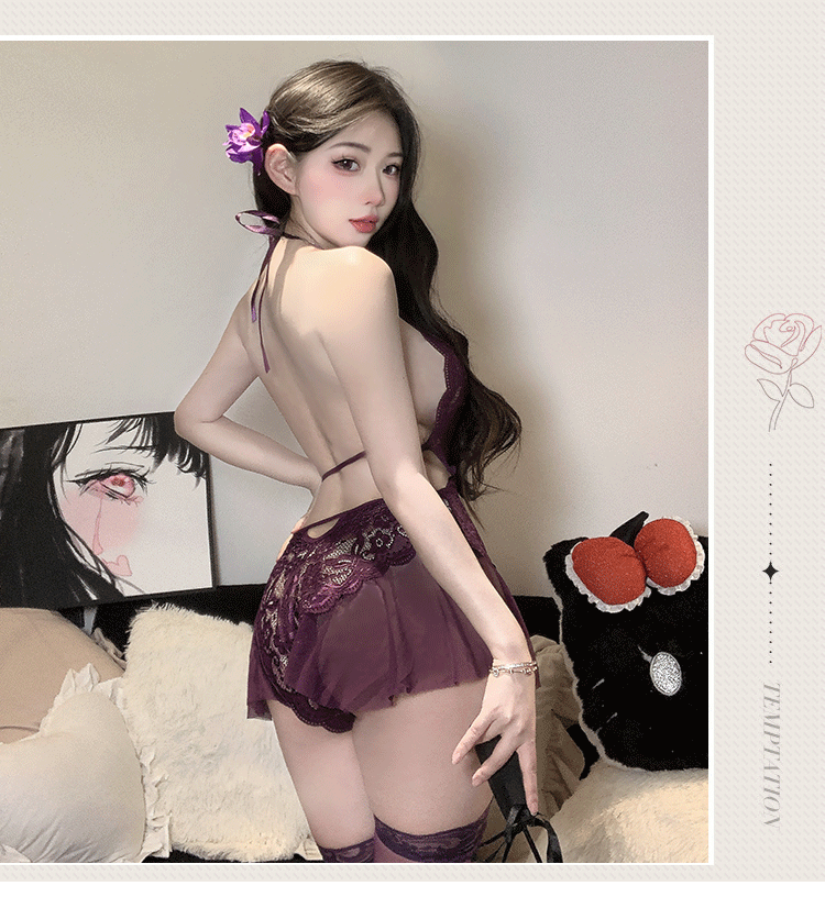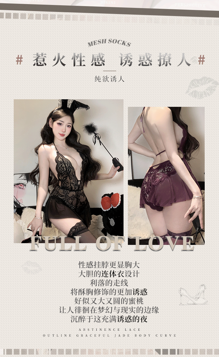 BS2123-性感內衣情趣內衣女純欲風開檔蕾絲透視連體睡衣套裝女睡衣睡裙