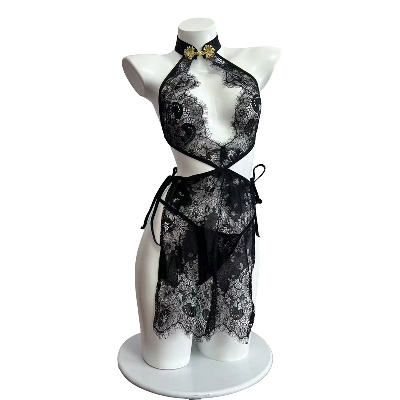 BS2154-性感情趣內衣純欲蕾絲鏤空復古旗袍制服誘惑透視睡衣套裝女睡衣睡裙