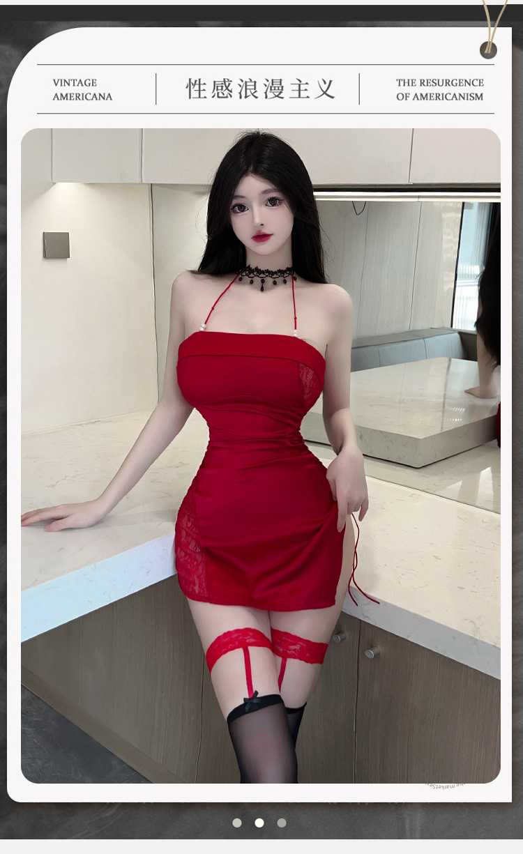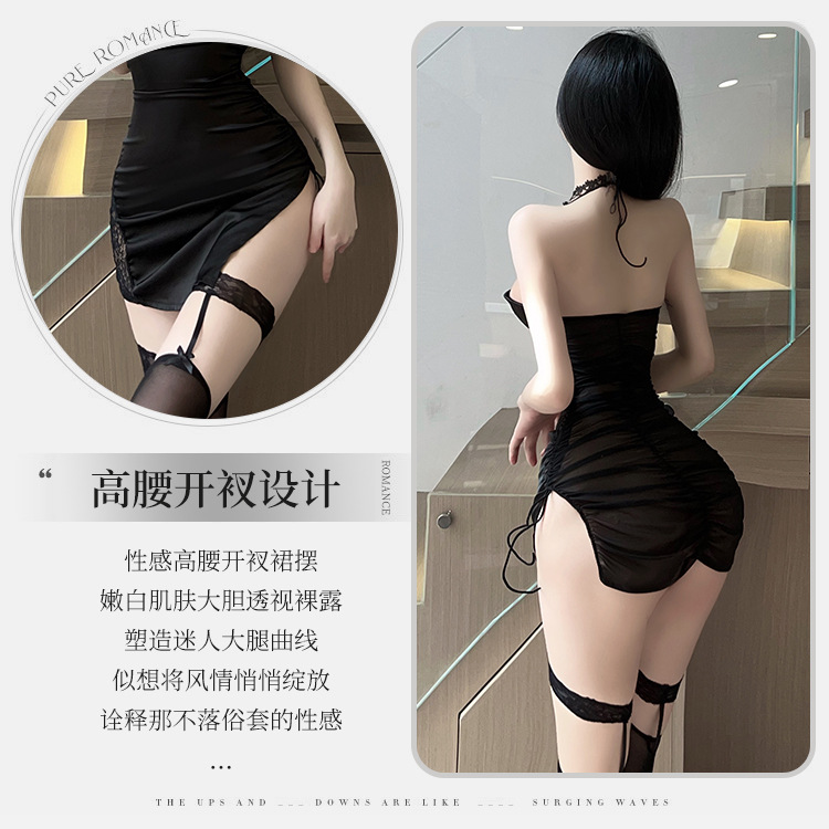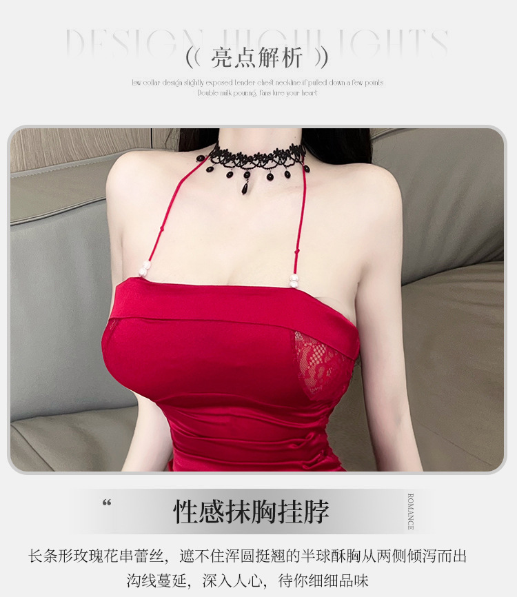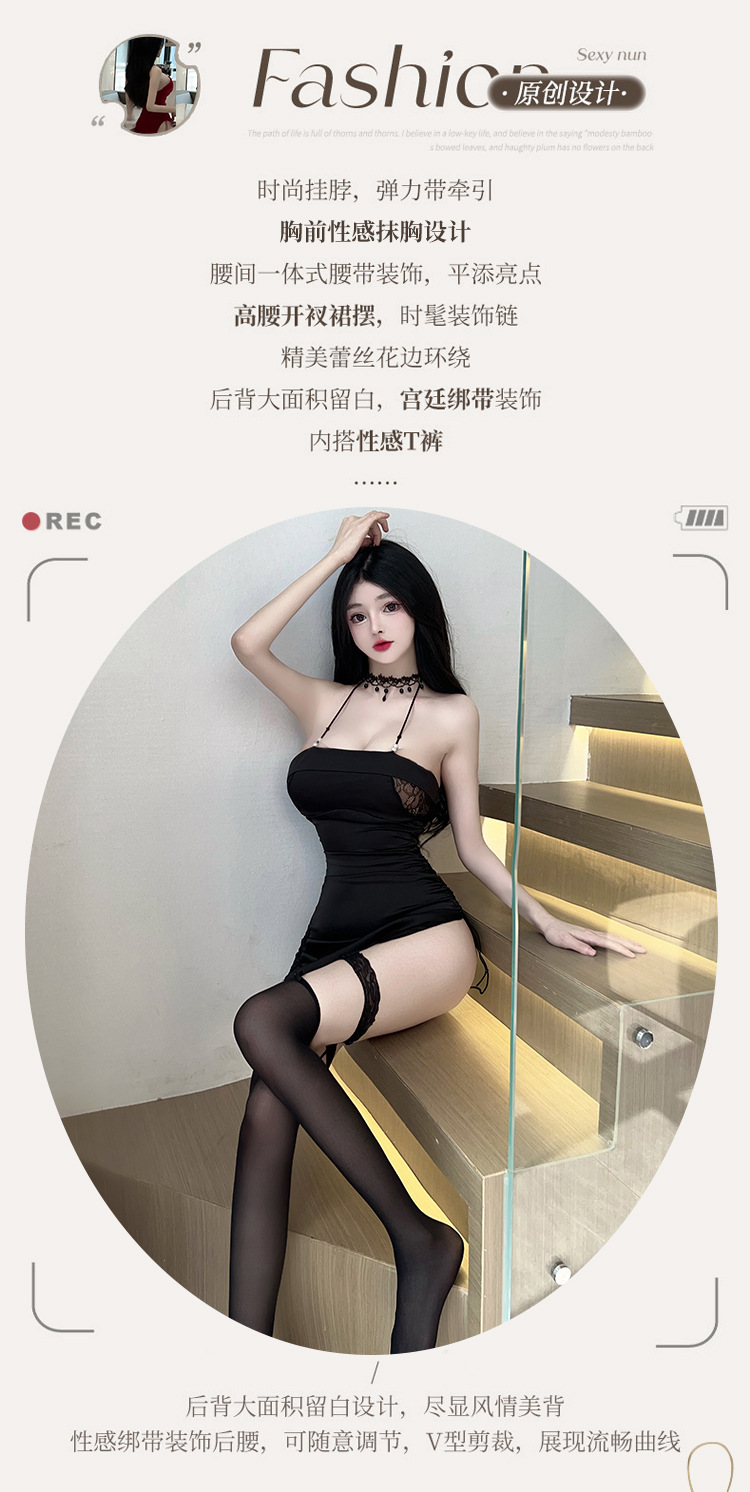BS2773-性感內衣情趣內衣女性感吊帶抹誘惑胸蕾絲拼接綁帶長裙女睡裙女睡衣