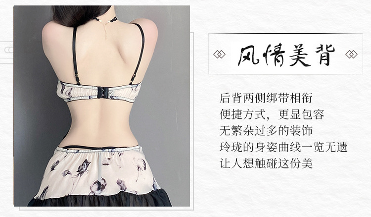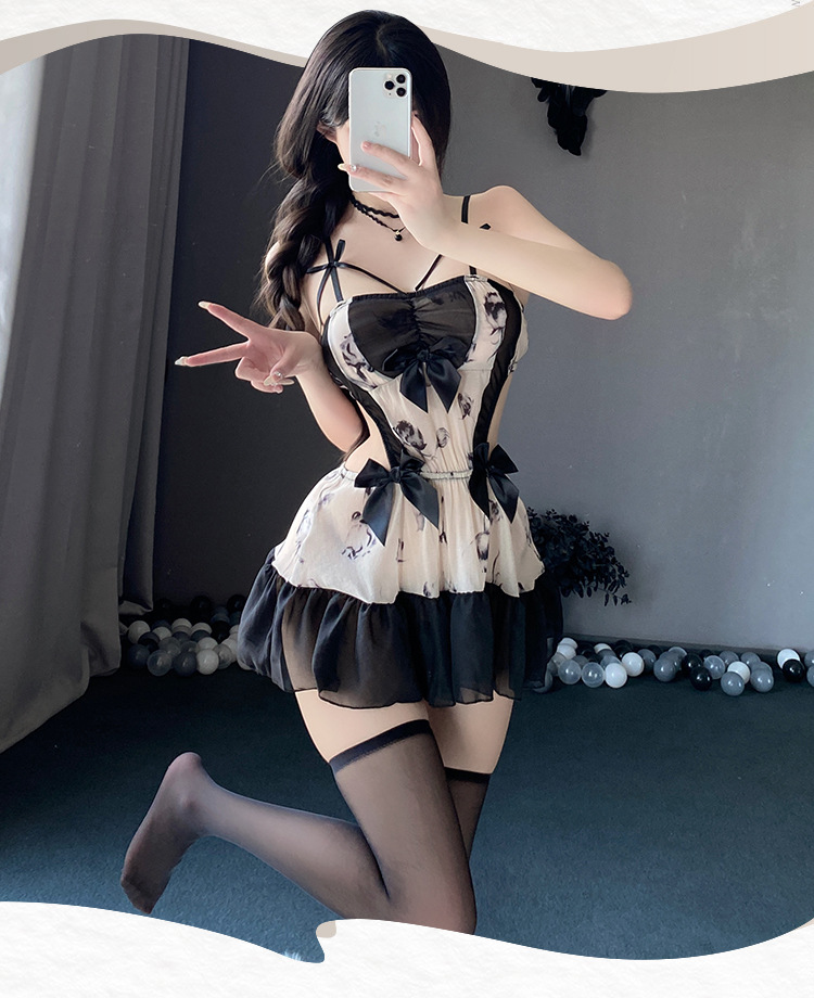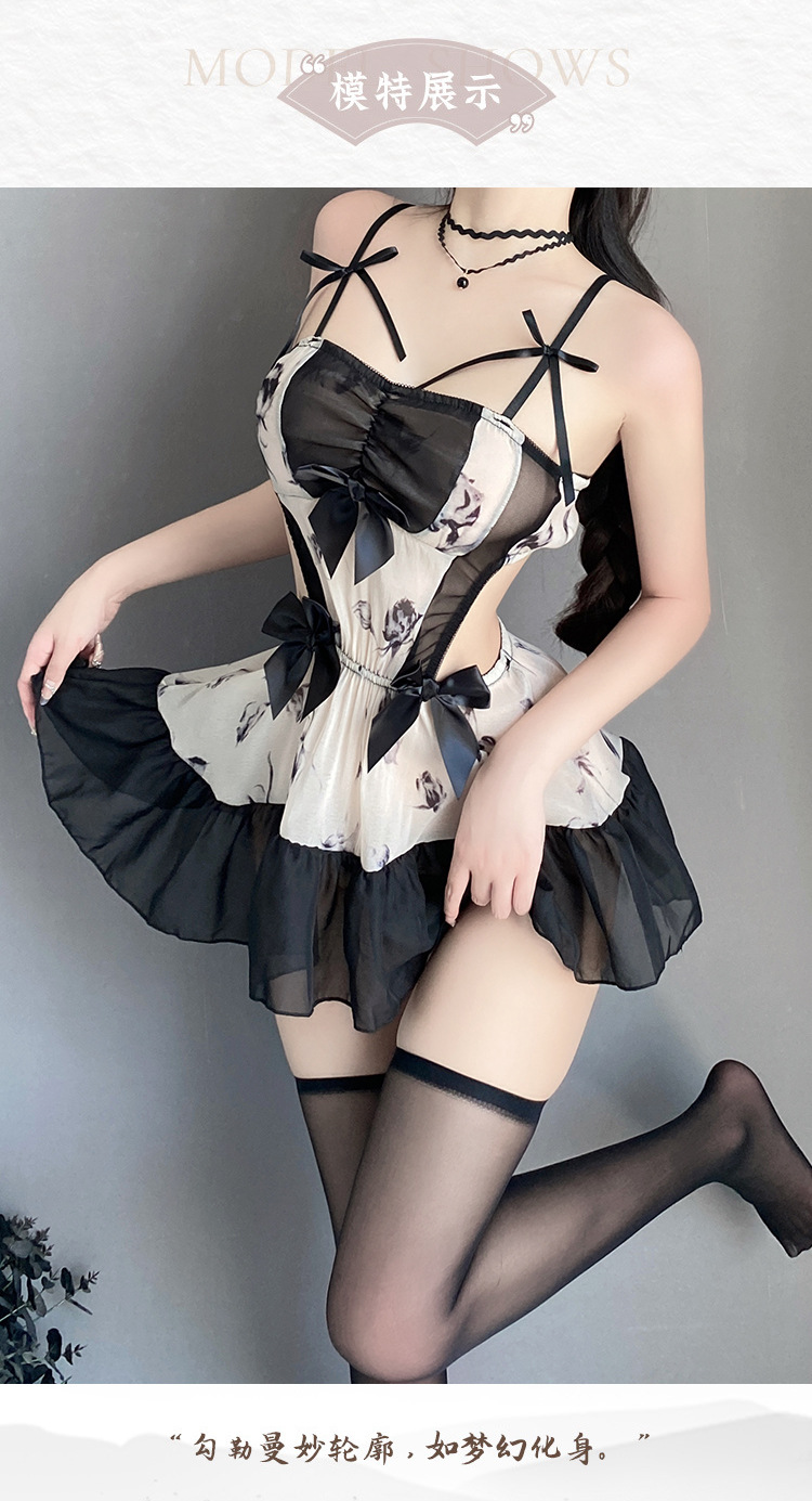 BS2807-性感內衣情趣內衣性感水墨蝴蝶結印花抹裙純欲透視誘惑裝女睡衣睡裙