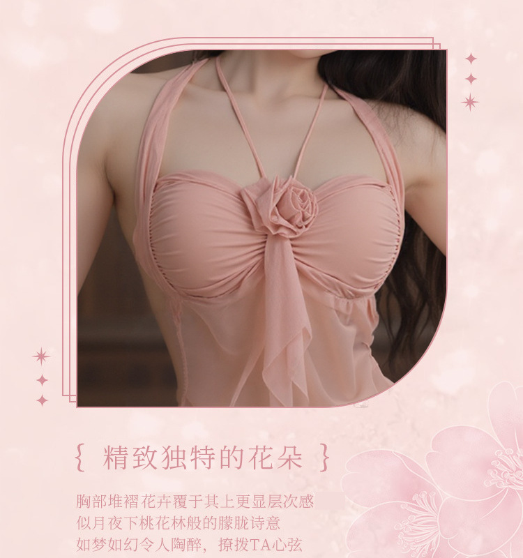 BS6609-玫瑰仙女吊帶連衣裙透視掛脖性感女情趣內衣女免脫套裝女睡衣睡裙