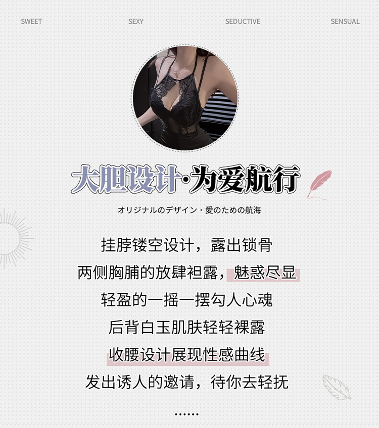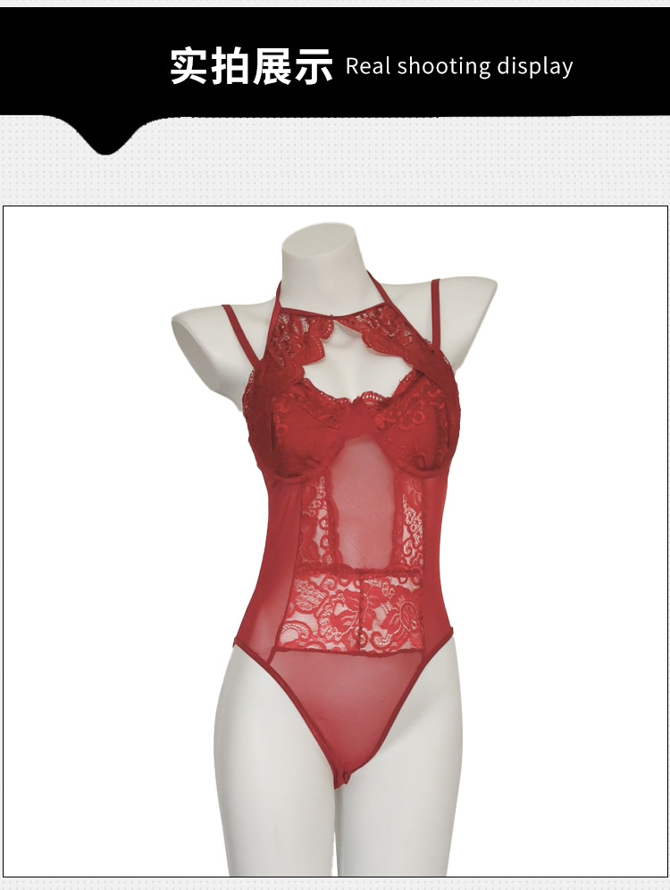 BS8110-性感內衣情趣內衣女掛脖吊帶連體衣縷空純欲蕾絲拼接修身女睡衣睡裙