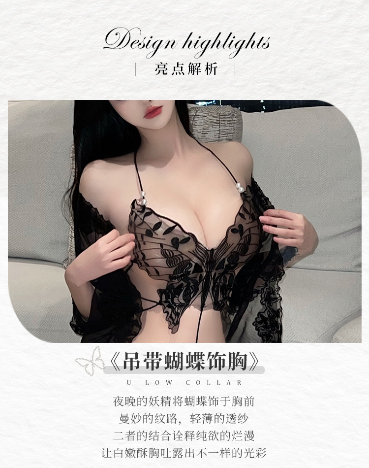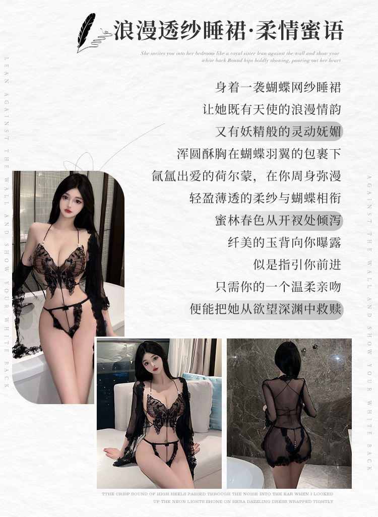 BS8214-性感內衣情趣內衣女性感蝴蝶上衣透視綁帶連體三點式外罩衫裝女睡衣睡裙