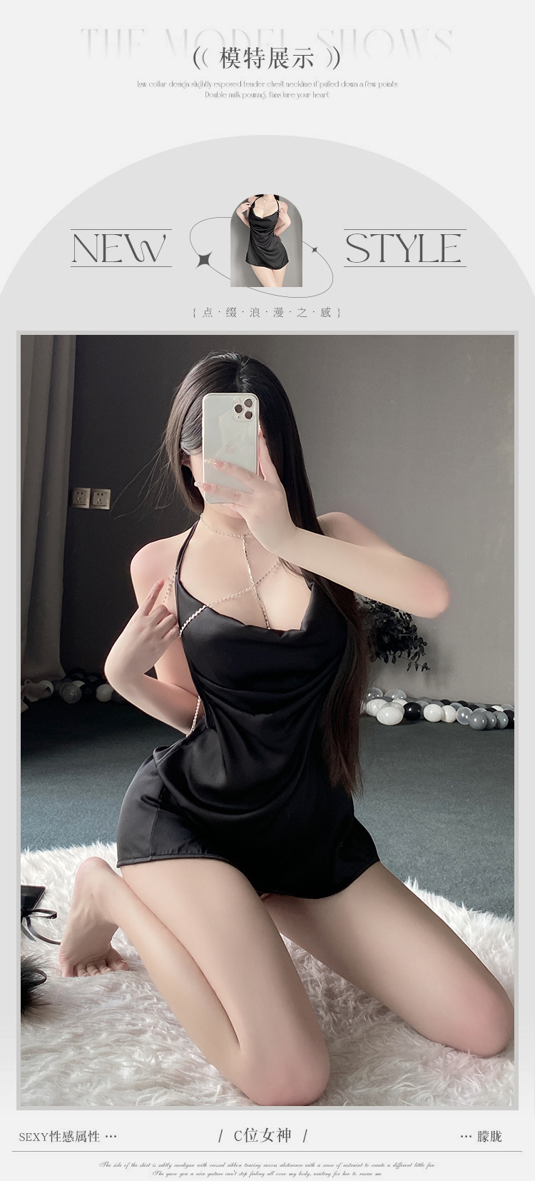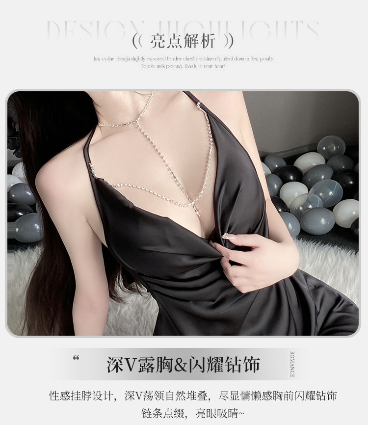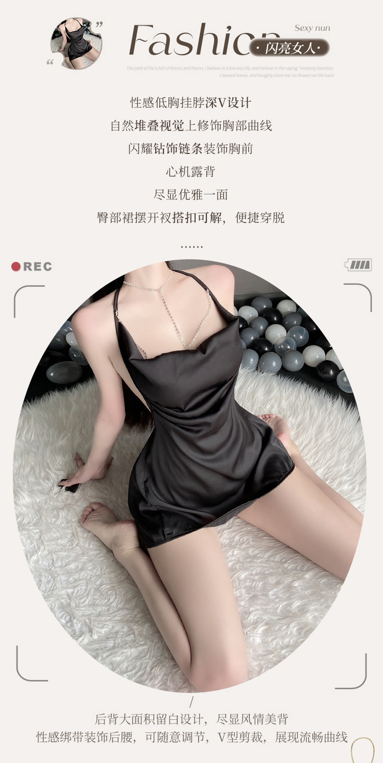 BS8219-性感內衣情趣內衣女性感掛脖亮鑽純欲風露背吊帶裙女睡衣女睡裙