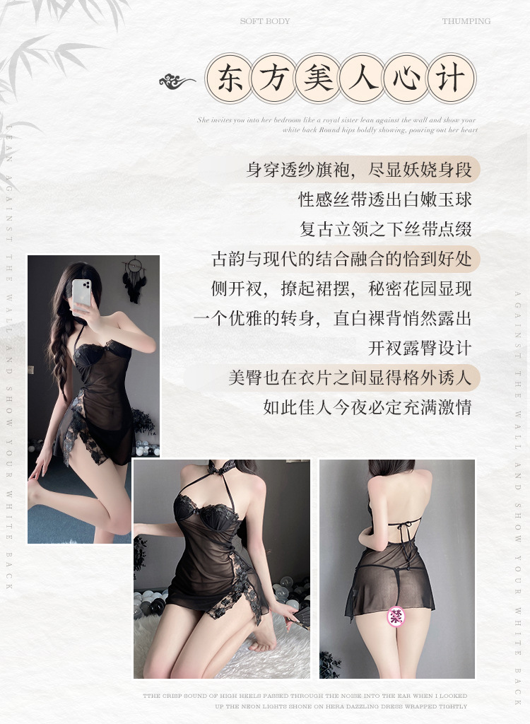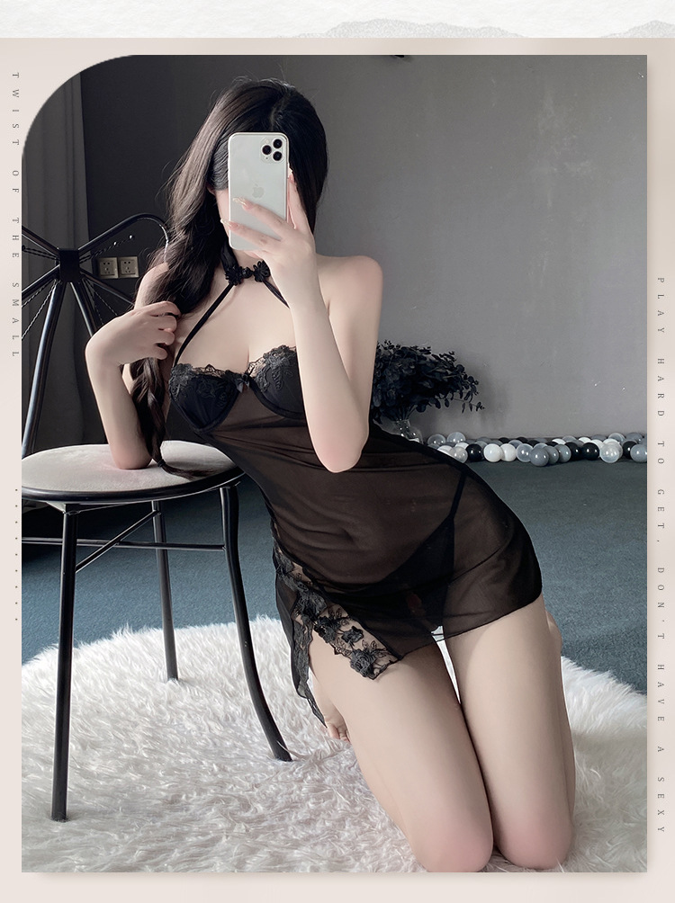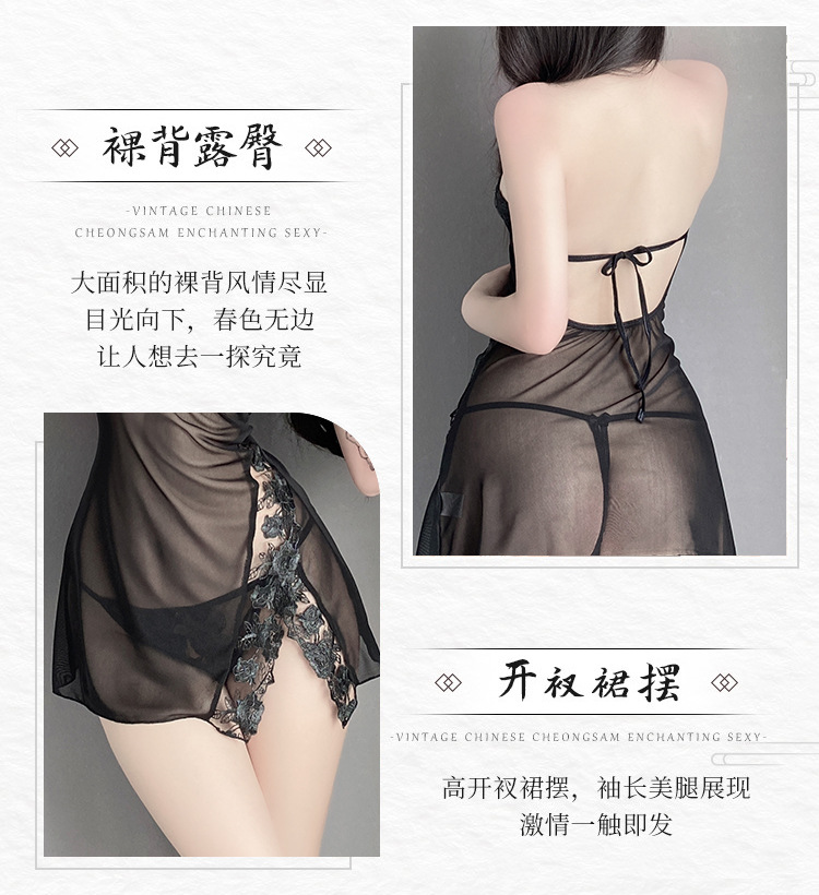 BS8220-性感內衣情趣內衣透視睡裙性感蕾絲旗袍火辣免脫誘惑女腄衣
