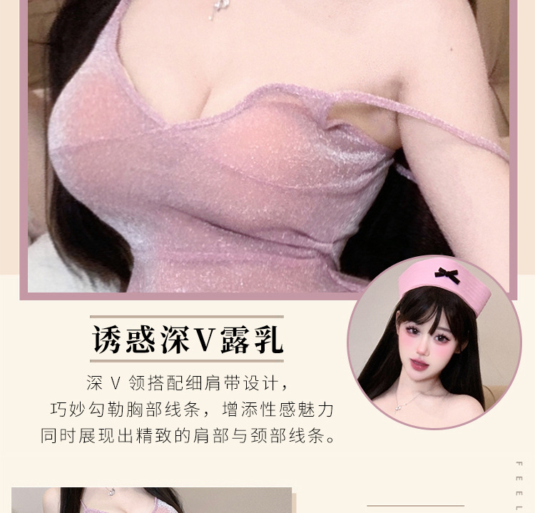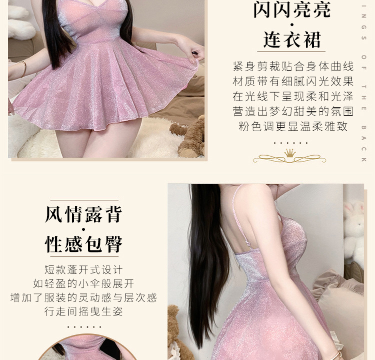 BS8233-性感情趣內衣女純欲吊帶亮閃粉睡裙睡衣激情床上約會套裝女睡衣睡裙