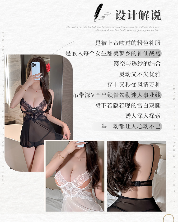 BS8326-性感內衣情趣內衣網紗透明純欲透視誘惑吊帶蕾絲免脫女睡衣裝女睡裙