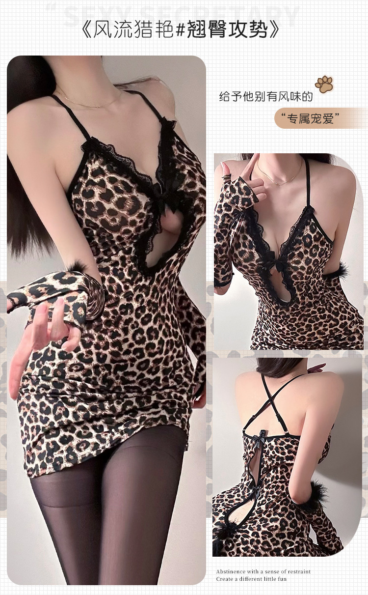 BS8343-性感內衣情趣內衣豹紋包臀超短裙制服純欲激情風性感免脫套裝女睡衣睡裙