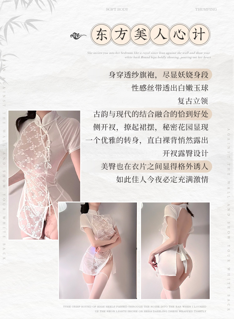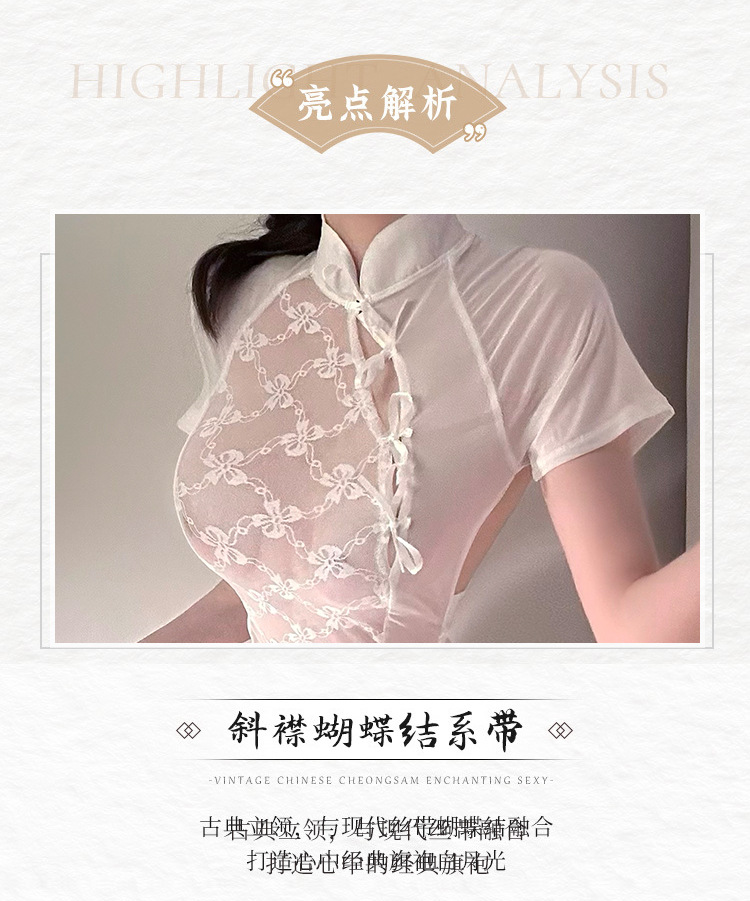 BS8345-性感內衣蕾絲開叉透視旗袍制服純欲誘惑情趣內衣激情免脫女睡衣睡裙