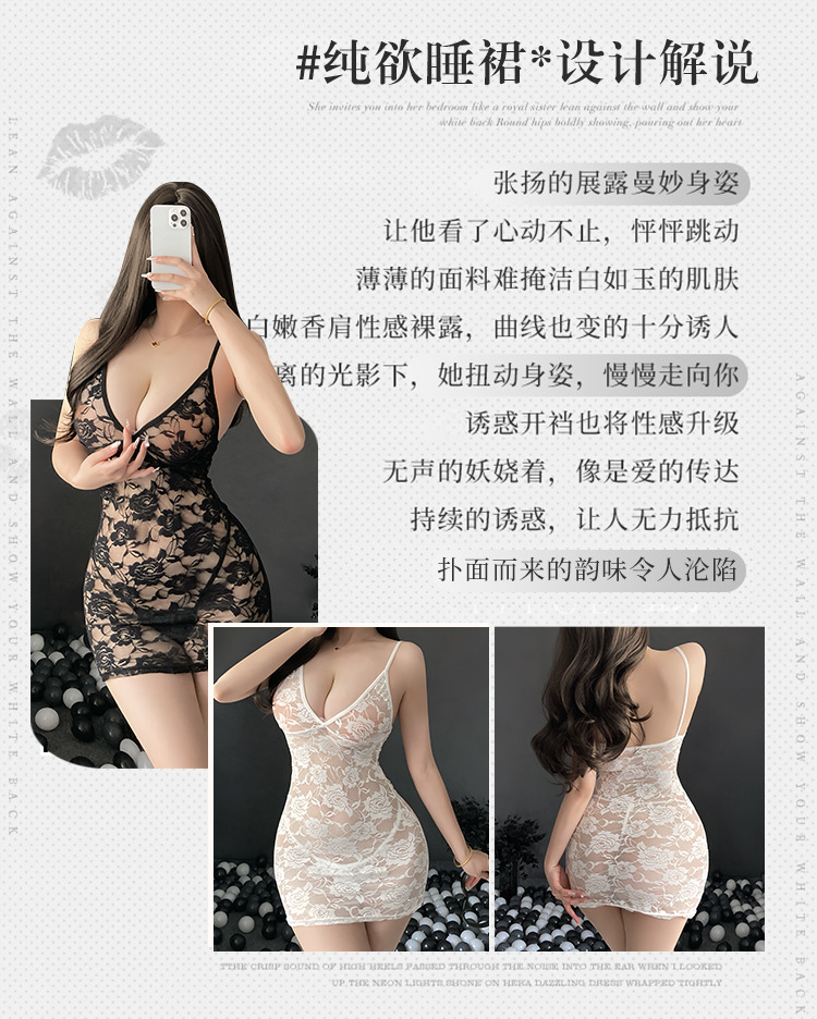 BS8543-性感內衣情趣內衣性感低胸蕾絲透視吊帶連衣裙辣妹修身女睡衣睡裙