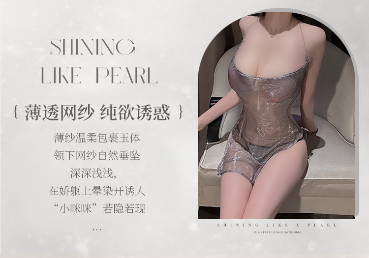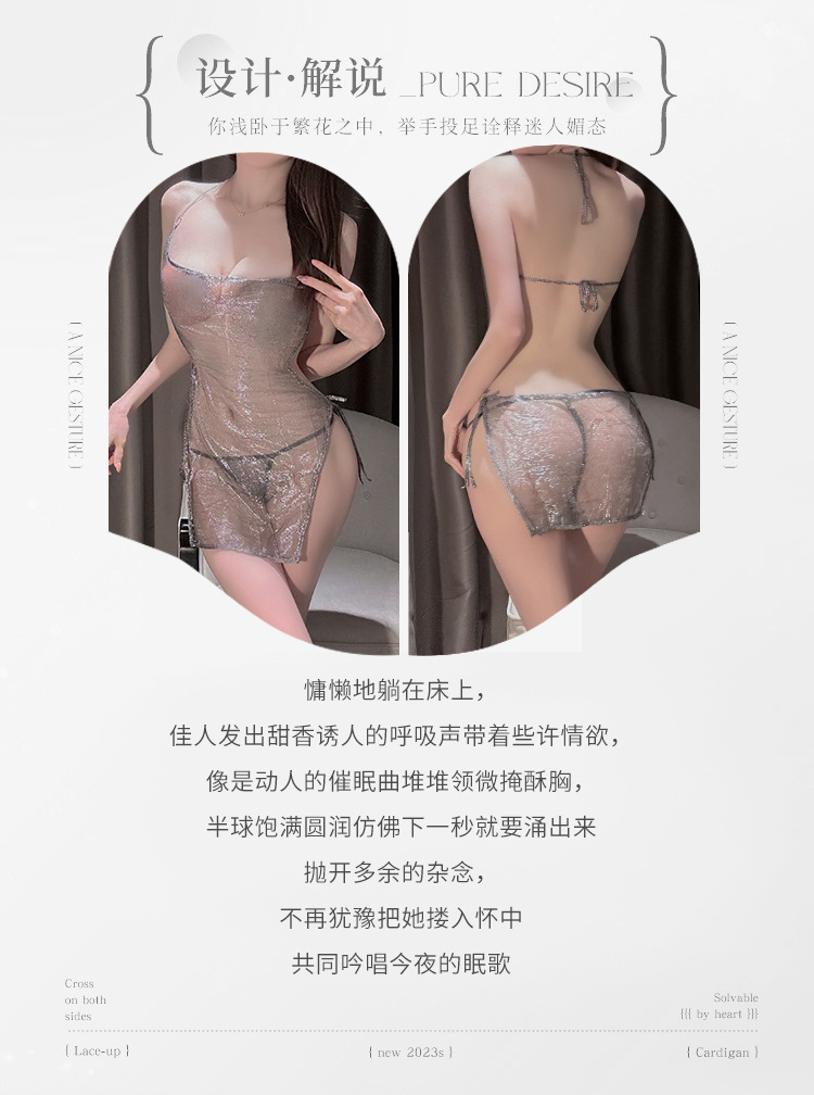 BS8557-性感內衣情趣內衣閃光薄紗綁帶露背免脫純欲女睡衣激情誘惑睡裙