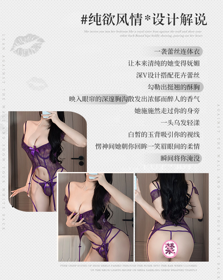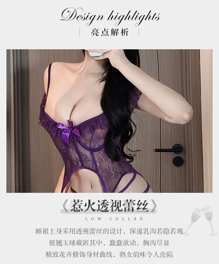 BS8578-性感內衣迷韻味紫色內衣鏤空露背透視性感蕾絲套裝連體衣女睡衣
