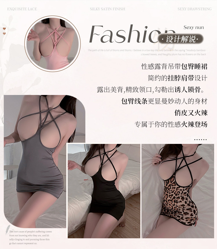 BS8617-性感內衣情趣內衣束縛露乳包臀吊帶連衣睡裙後背鏤空綁帶制服套裝女睡衣睡裙