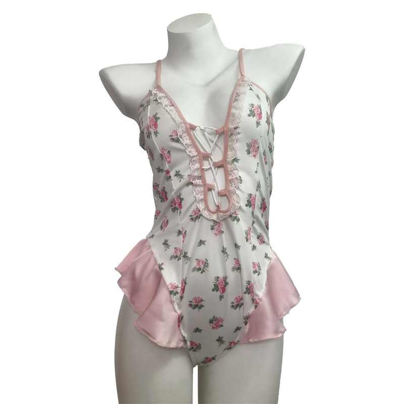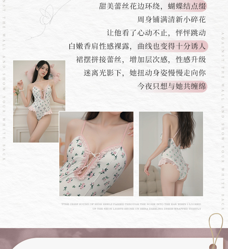 BS9001-性感情趣內衣純欲吊帶綁帶死庫水連體衣可愛碎花睡衣免脫套裝女睡衣睡裙