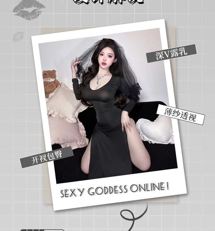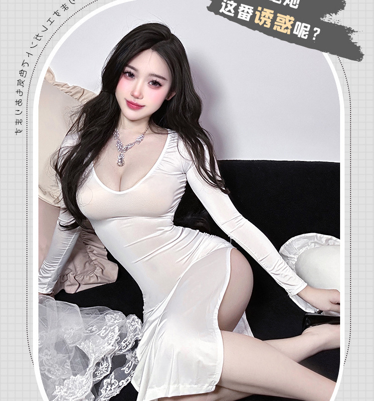 BS9182-性感情趣內衣女性感高腰開叉透視旗袍名媛夜店風制服火辣免脫女睡衣睡裙