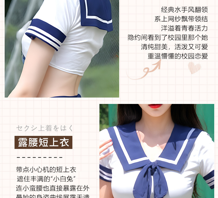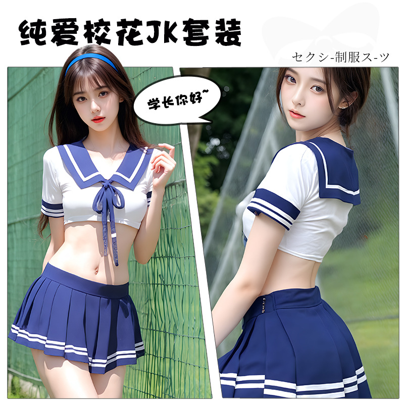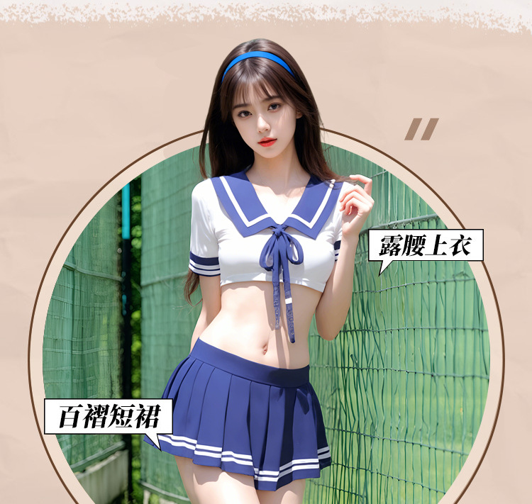 BT1205-2大碼性感情趣內衣俏皮撞色翻領可愛日系學生角色扮演制服大碼套裝