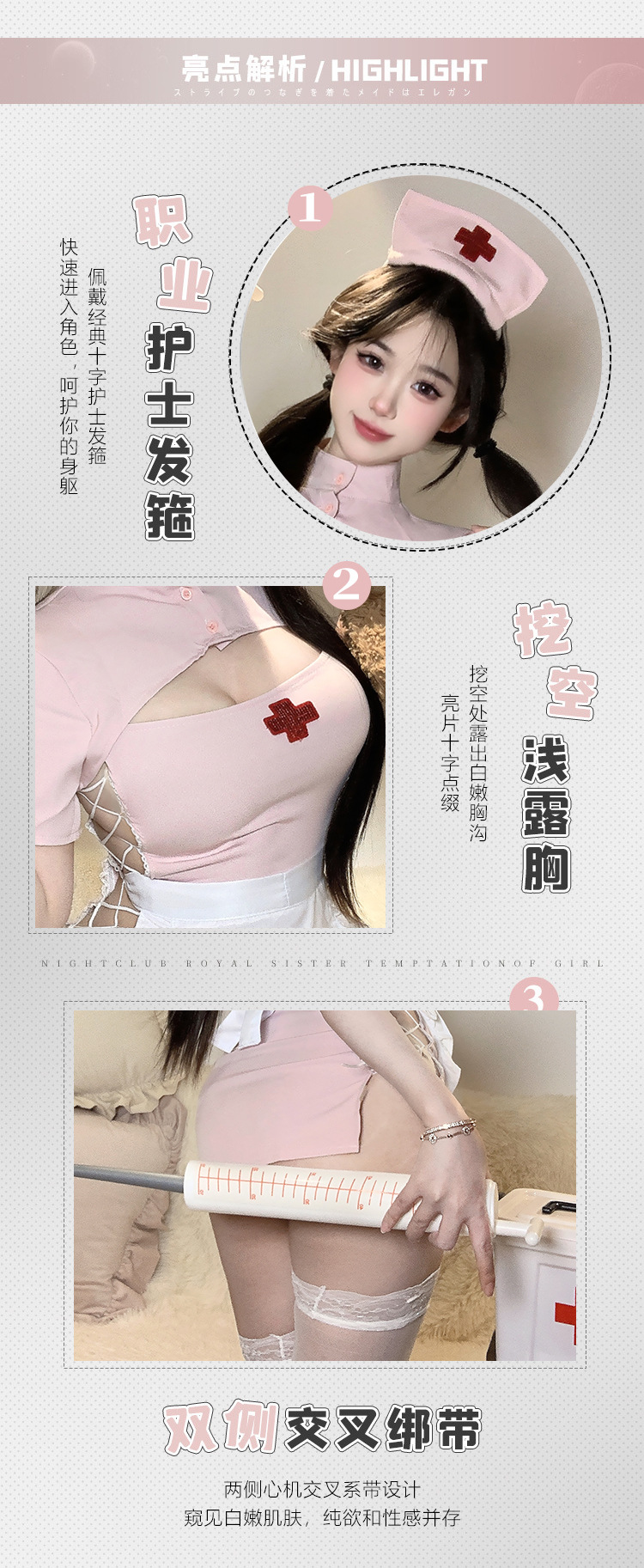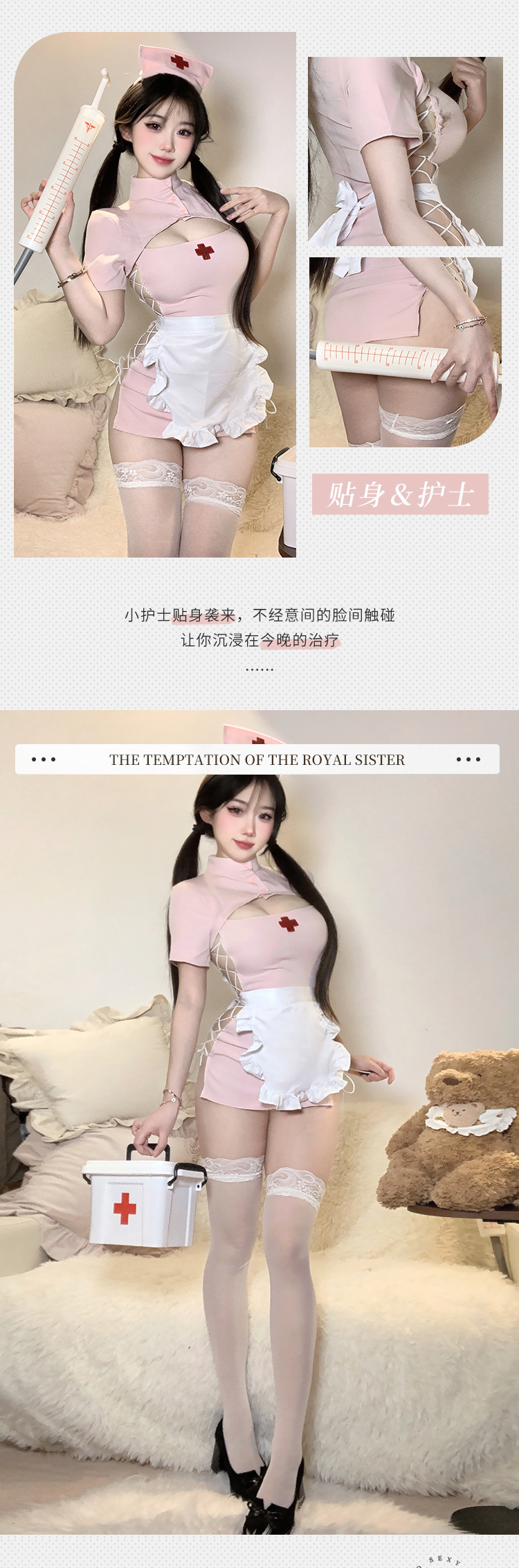 BT2126-情趣內衣甜心護士情趣內衣性感開衩露臀制服套裝包臀套裝角色扮演女睡衣