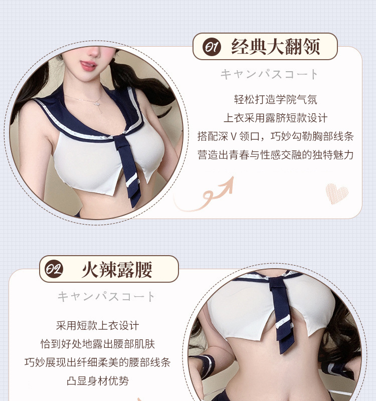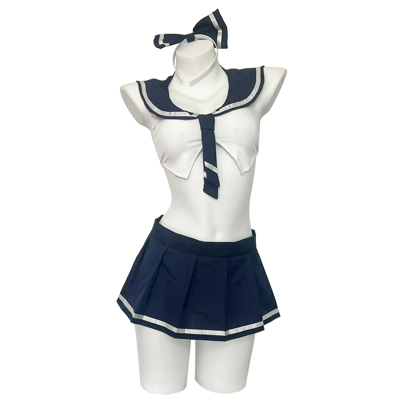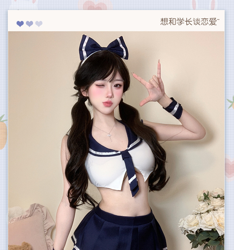 BT2157-性感情趣內衣純欲翻領蝴蝶結裝潢百褶短裙减齡學生裝制服套裝女睡衣睡裙角色扮演