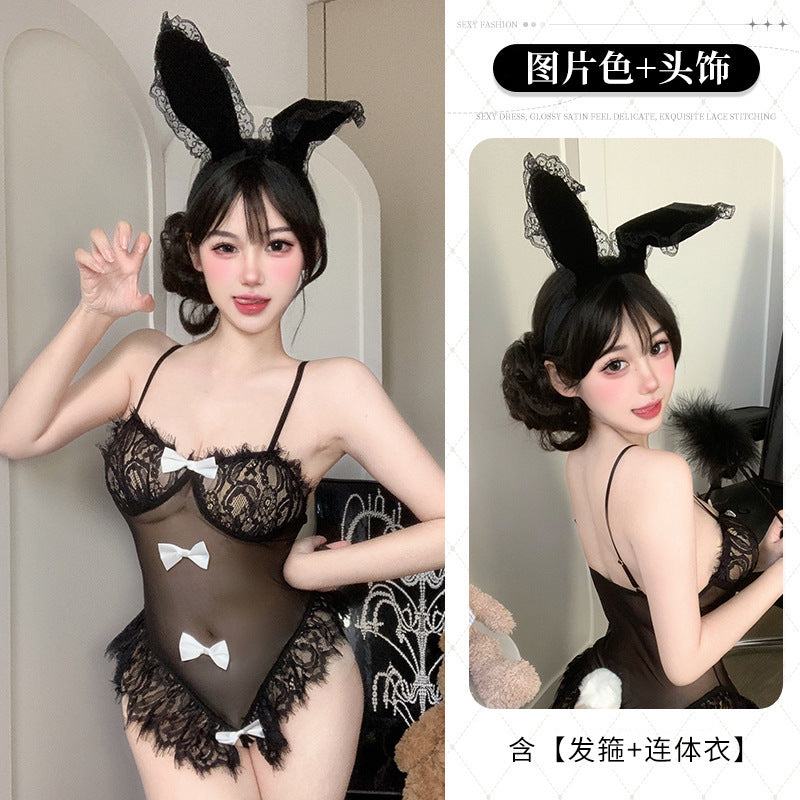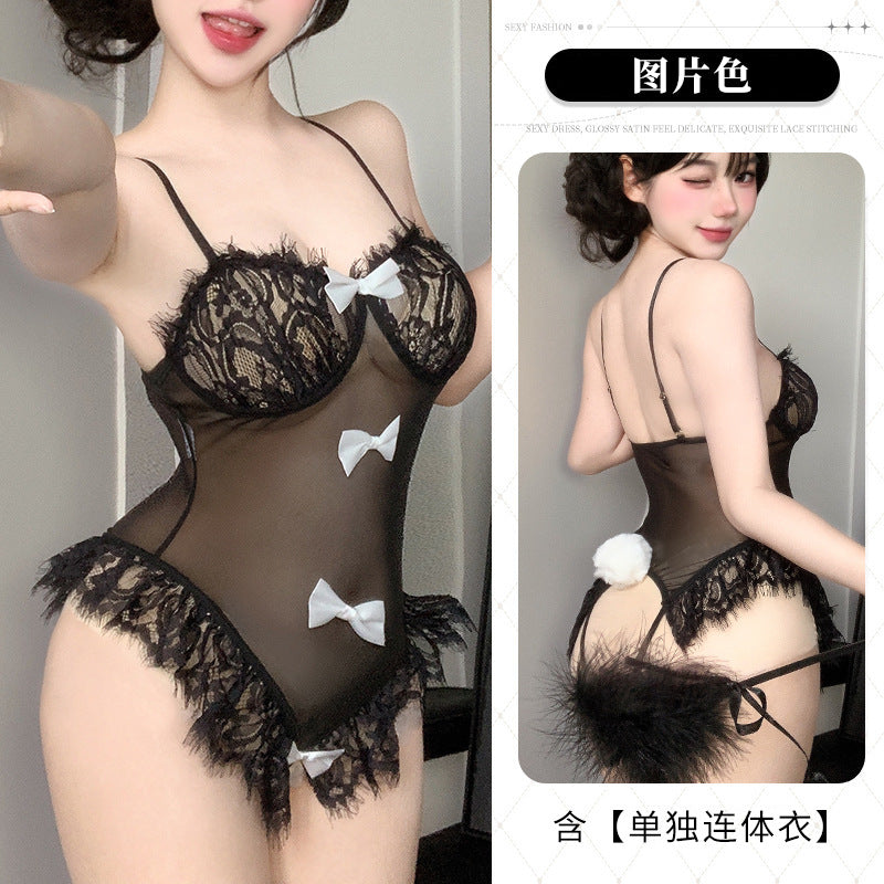 BT2160-性感情趣內衣純欲蕾絲吊帶網紗連體衣透視開檔免脫誘惑制服女睡衣睡裙