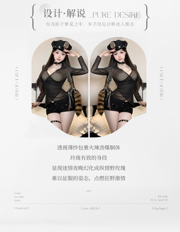 BT2166-性感情趣內衣透視網紗純欲長袖性感睡衣連衣裙包臀套裝女睡衣睡裙